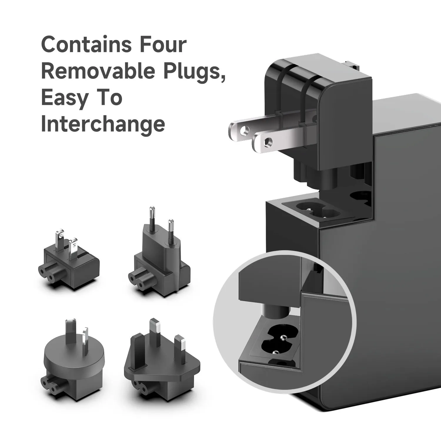 Spine multi-standard: l'adattatore di alimentazione STARWELL è dotato di 4 tipi di spine snap-in (USA, UE, Regno Unito e AU), non sono necessari convertitori aggiuntivi per i viaggi oltre confine.