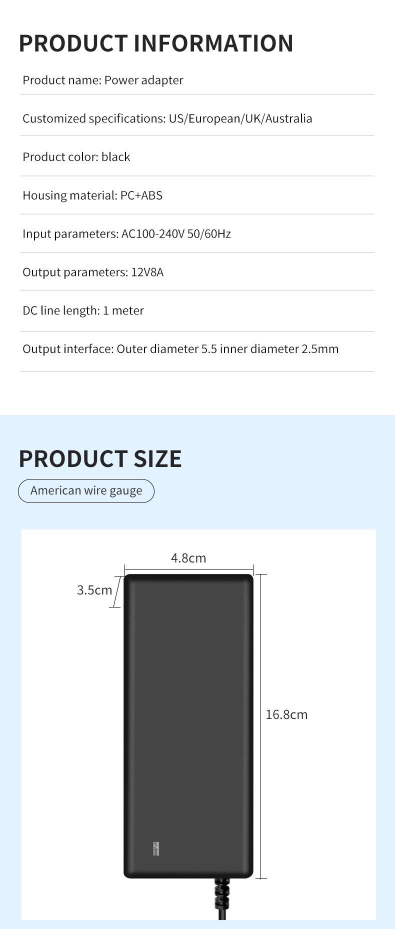 L'adattatore di alimentazione da tavolo STARWELL 12V 8A 96W è una soluzione di alimentazione ad alta efficienza progettata per dispositivi elettronici ad alta potenza. Con un'uscita precisa di 12 V ± 5% e un'efficienza di conversione del 95%, diventa un partner di alimentazione ideale per apparecchiature industriali, strumenti medici, sistemi di sicurezza, terminali elettronici di livello desktop e altri scenari. Caratterizzato da un design di ingresso ad ampia tensione (CA 100-240 V 50/60 Hz), è compatibile con gli standard della rete elettrica globale, senza bisogno di convertitori aggiuntivi.