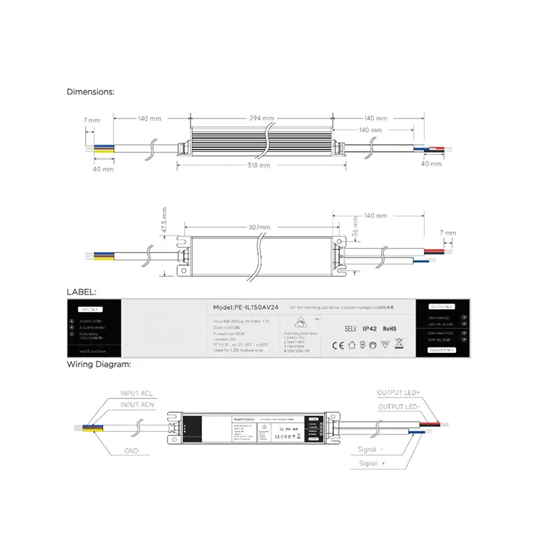 Conforme alle certificazioni CE, FCC e UL, il nostro driver LED da 150 W combina prestazioni eccellenti con sicurezza senza compromessi: la tua scelta affidabile per installazioni di illuminazione di livello professionale.