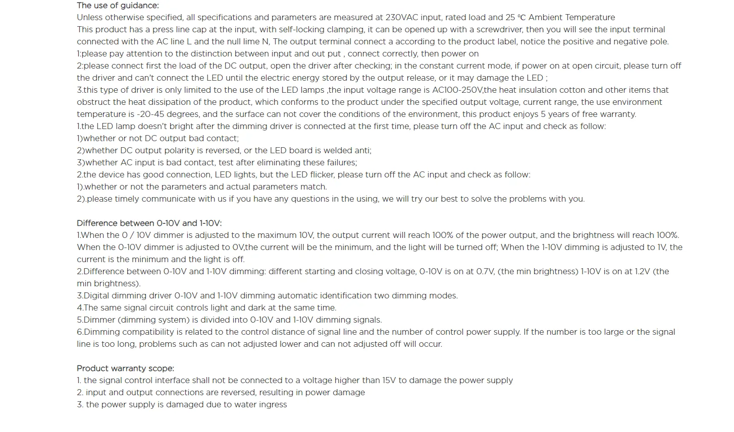 Dotato di un'interfaccia di regolazione standard da 0-10 V, supporta la regolazione fluida della luminosità dall'1% al 100%, compatibile con la maggior parte dei principali dimmer sul mercato. Vantando un'elevata efficienza energetica fino al 95% e un ampio intervallo di ingresso CA di 100-277 V, si adatta facilmente agli standard di tensione globali, perfetto per progetti internazionali.