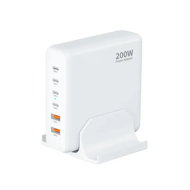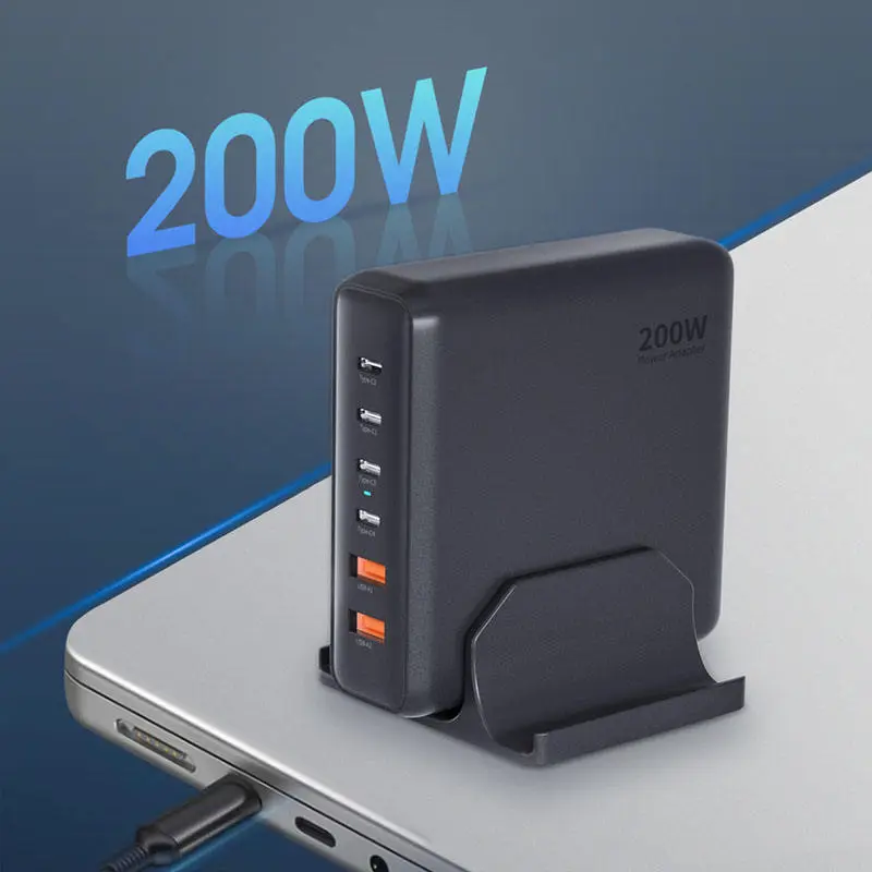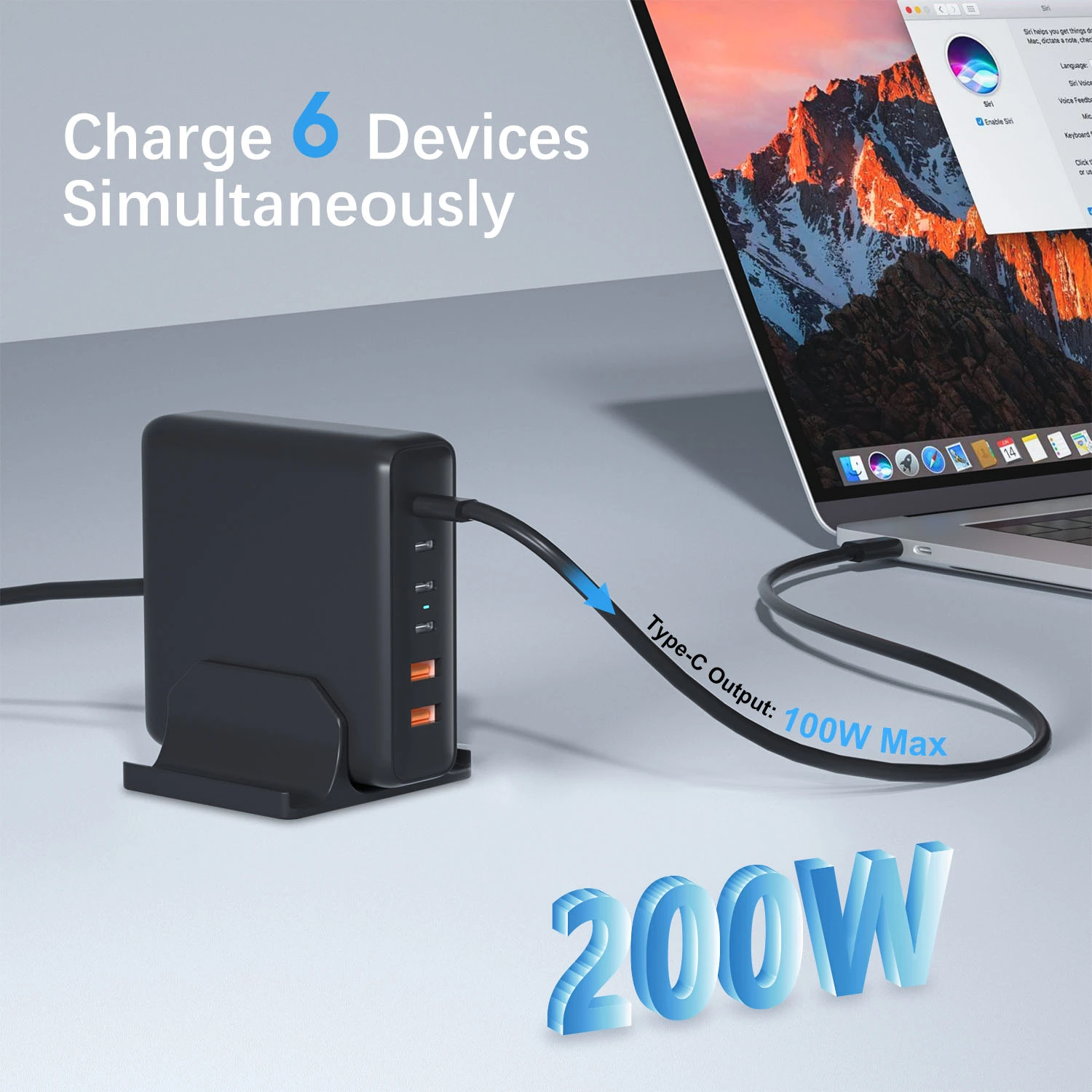 Caricabatterie rapido GAN da 200 W 4 caricabatterie USB-C + 2 caricabatterie USB-A da 200 W PD
