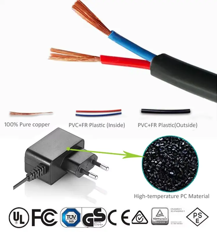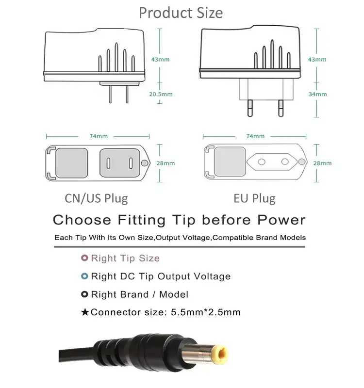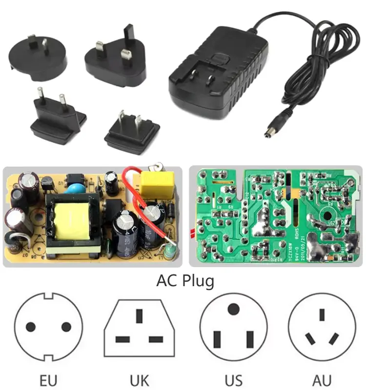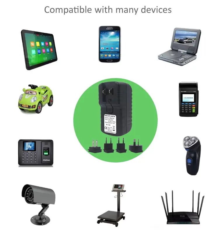 L'adattatore di alimentazione da 24 W di alta qualità è offerto dal produttore cinese Starwell, il nostro adattatore ha tipi di spine, come spine USA, Regno Unito, UE e AU.