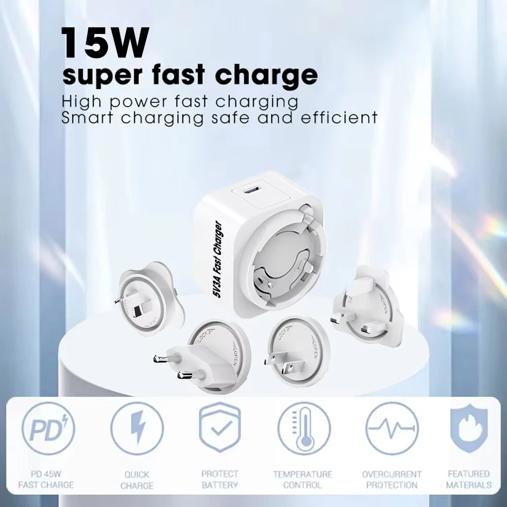 L'adattatore di alimentazione con prese CA intercambiabili da 5 V 3 A di alta qualità prodotto da Starwell fornisce una potenza di uscita di 15 W per un'esperienza di ricarica globale più rapida e sicura. Disponiamo di una certificazione internazionale completa per questo prodotto e forniamo una garanzia di due anni. Sentiti libero di contattarci. L'uscita 5 V/3 A offre una velocità di ricarica ottimale per smartphone, tablet, altoparlanti Bluetooth e la maggior parte dei dispositivi alimentati tramite USB, riducendo significativamente i tempi di ricarica rispetto agli adattatori standard.