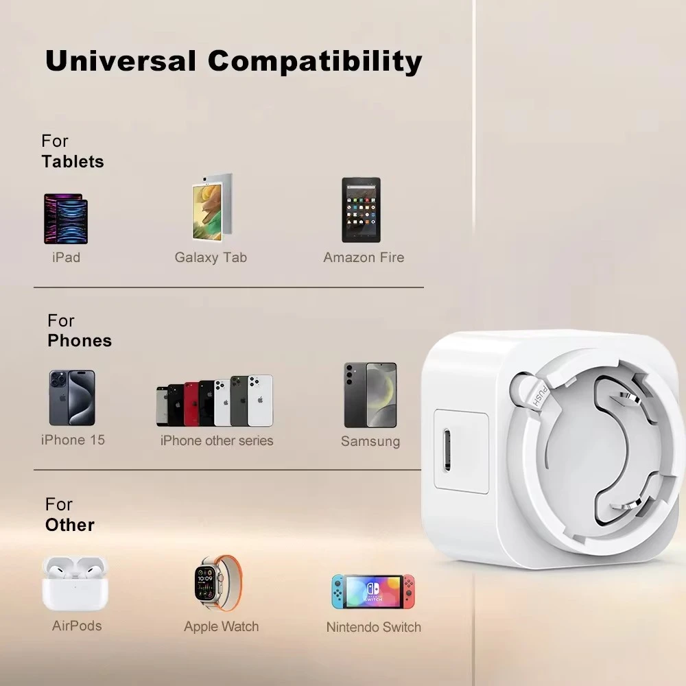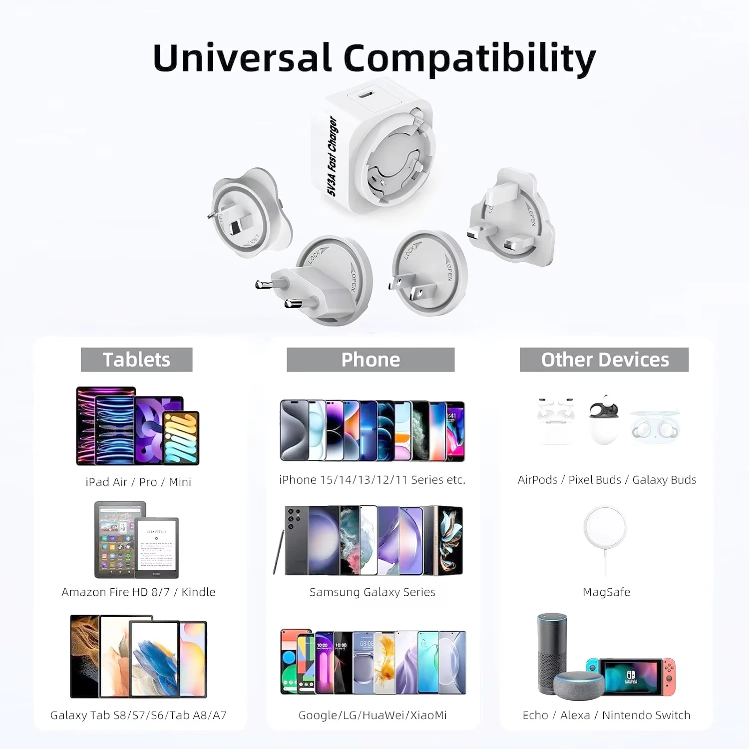 Ideale per alimentare smartphone, tablet, altoparlanti portatili e altri dispositivi elettronici, questo adattatore combina velocità, sicurezza e versatilità globale in un'unica soluzione compatta.