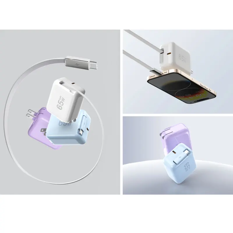 Caricabatterie PD da 65 W con cavo USB C trattabile |