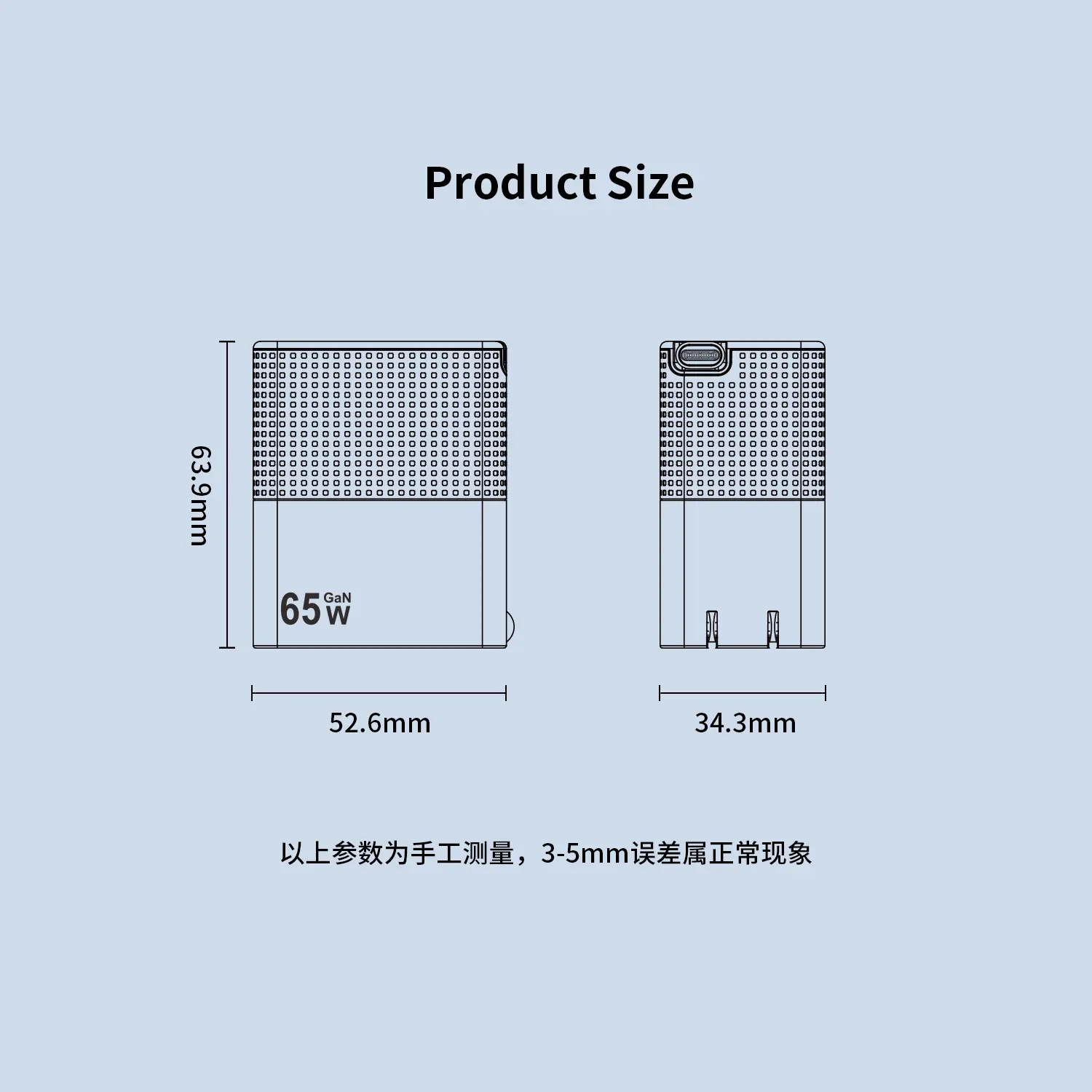 Doppie porte USB-C: il caricabatterie PD 3.0 da 65 W può caricare due dispositivi contemporaneamente. Durante i due processi di ricarica, la potenza viene assegnata come 45 W e 20 W.