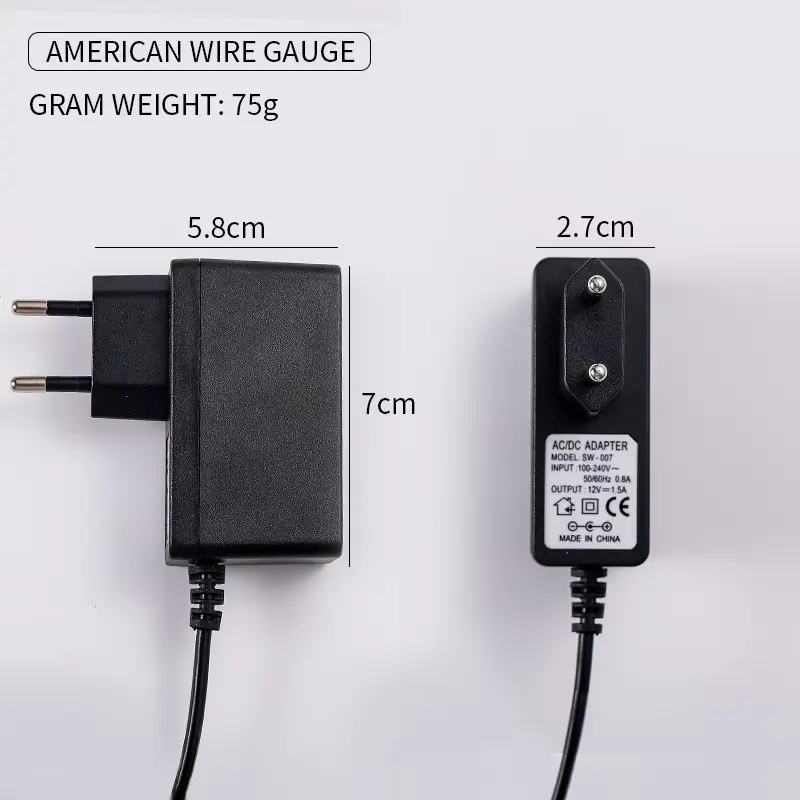 Caratteristiche principali: l'alimentatore switching di alta qualità Starwell per montaggio a parete UE offre prestazioni affidabili con opzioni di uscita 12V1A e 12V1,5A, adatto per i mercati europei e americani.