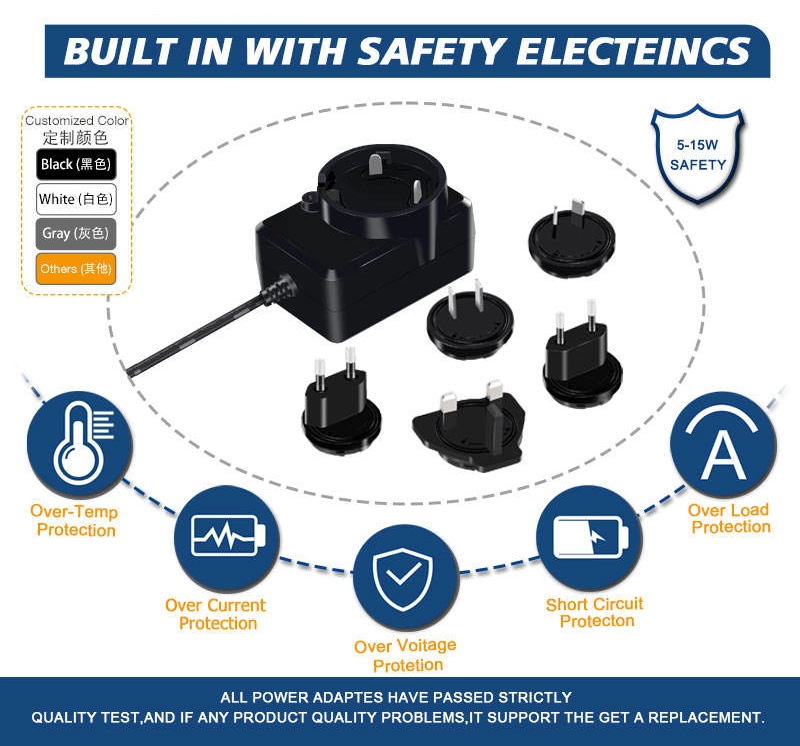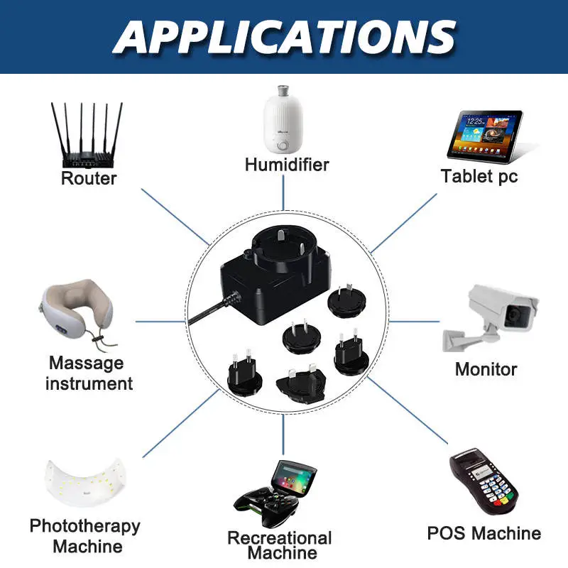 L'adattatore di alimentazione con spina intercambiabile di alta qualità Starwell è un dispositivo versatile e portatile progettato per convertire l'elettricità di rete CA (corrente alternata) da una presa a muro in alimentazione CC (corrente continua) stabile e a bassa tensione richiesta da un'ampia gamma di dispositivi elettronici. La sua caratteristica distintiva è un insieme di spine rimovibili e intercambiabili (spesso chiamate "spine CA" o "lame di ingresso") conformi a vari standard internazionali di prese.